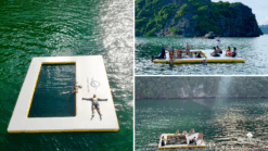 8:00 It’s time for swimming and water activities, submerged in the green water of the Bay with floats.
