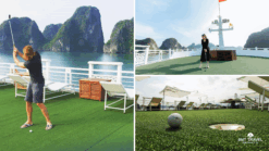 ✅ Meals on-board as mentioned in itinerary ✅ Sunrise Tai-chi demonstration ✅ Entrance fees, taxes and service charges ✅ Cooking class ✅ Bamboo Rowing Boat or Kayak ✅ Happy hour buy two get one free ✅ Mini golf course on sundeck ✅ Mineral water is free from Water Dispenser at every corridors ✅ Squid fishing or Karaoke till 10:00 pm ✅ Internet on boat |