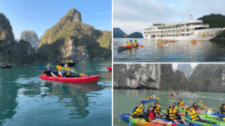10:30 Transfer to Lan Ha bay which is formed by the archipelago Cat Ba island . Stop at Dark and Bright caves area for kayaking for an hour and a half